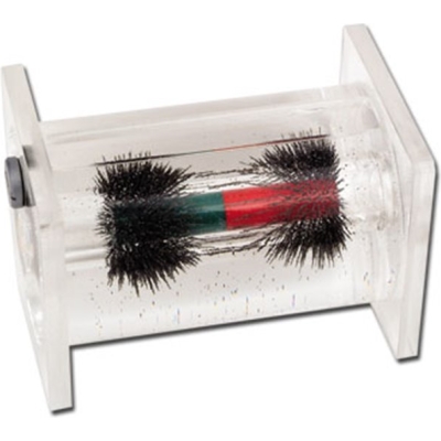 Het 3D magneetveld model bestaat uit een behuizing van acryl gevuld met speciale vloeistof en ijzervijlsel.