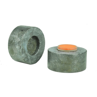 De bronnen zijn elk ingebed in schijfjes die in een cilindrische acrylglasbehuizing zijn geperst en hieraan zijn vastgelijmd.