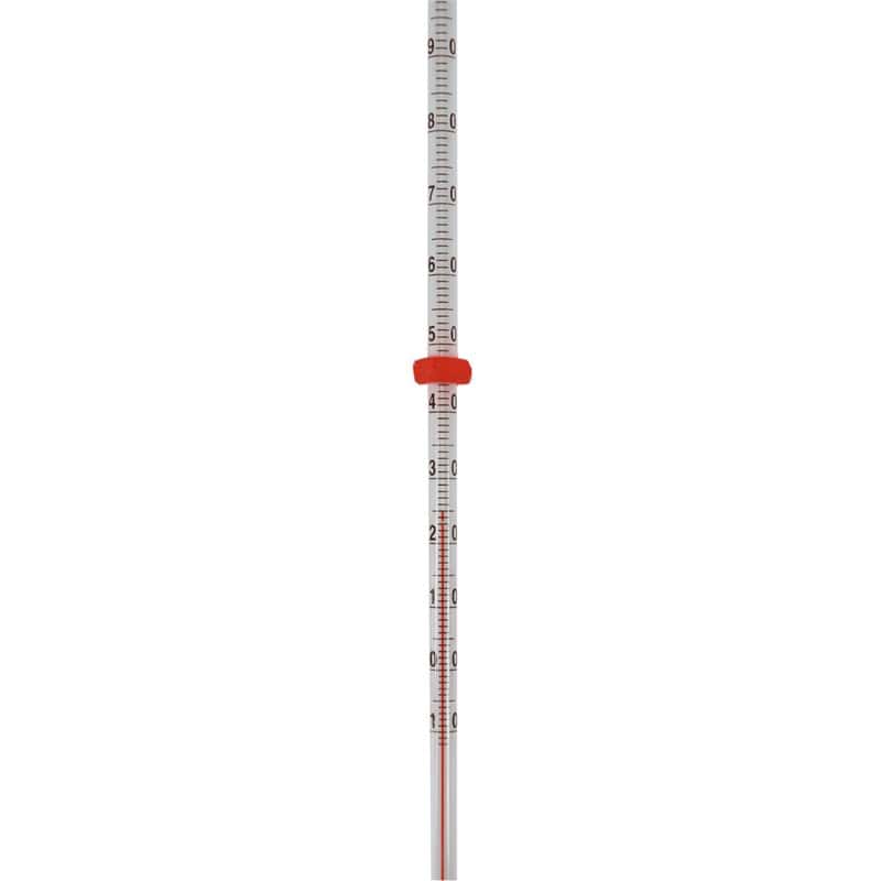 Vloeistofthermometer gevuld met alcohol, met een beweegbare siliconen driehoek (de driehoek voorkomt dat de thermometer van de tafel rolt en dient tevens als markeerpunt)