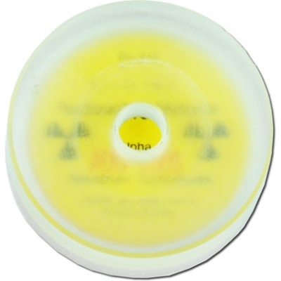 Bron voor alfa-straling (Polonium-210) met een activiteit van (A) = 3,7 kBq; halfwaardetijd is 138,4 dagen. Deze bron zendt alfastraling uit met een energieniveau van 5,304 MeV.