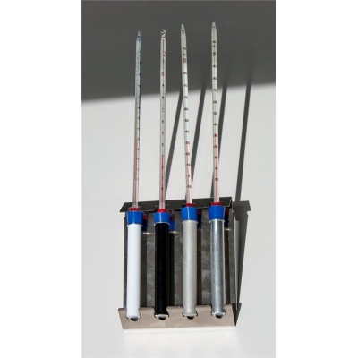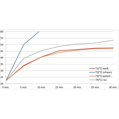Warmte absorptie kit om de absorptie van warmtestraling te demonstreren afhankelijk van de oppervlaktestructuur en -kleur: Vier aluminium buizen met verschillende oppervlakken en kleuren produceren binnen enkele minuten duidelijk zichtbare temperatuurverschillen.