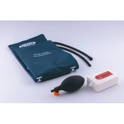 De manchet bestaat uit een opblaasbare zak die met een slang is aangesloten aan de handpomp en met de tweede slang aan de druksensor. De snelheid waarmee de manchet leegloopt is instelbaar met het ventiel.